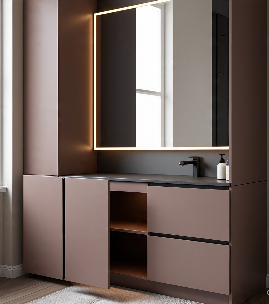 MIRROR-INTEGRATED VANITY UNIT