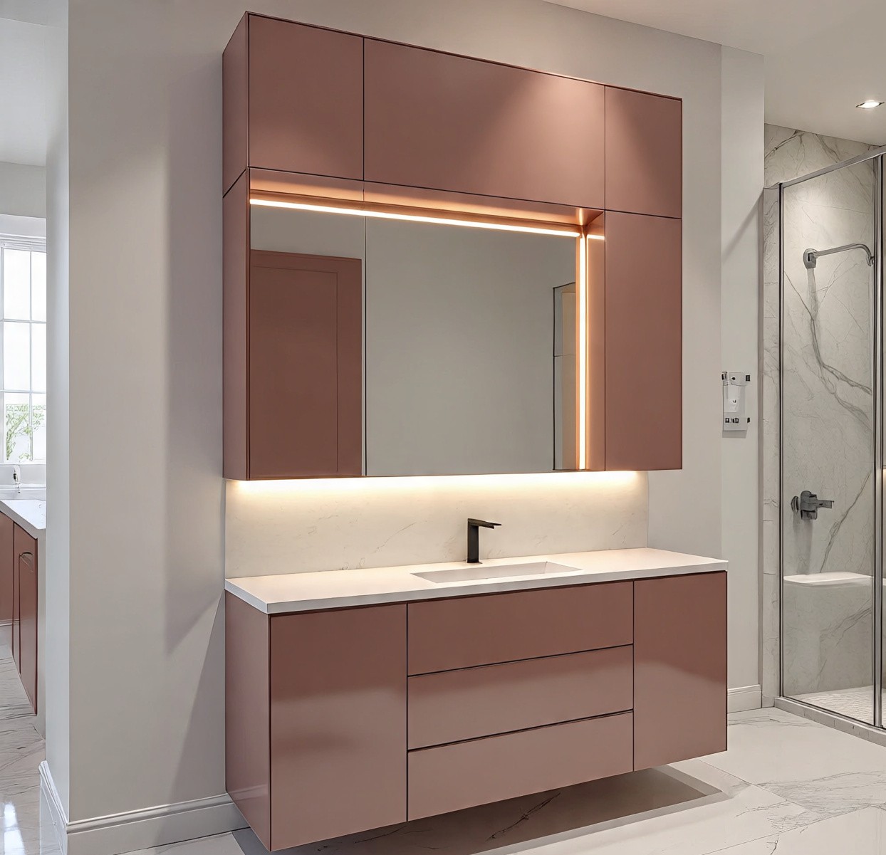 Our vanity units are thoughtfully designed to blend elegance with everyday functionality, featuring smart storage, premium finishes, integrated lighting, and durable craftsmanship to elevate your bathroom experience.
